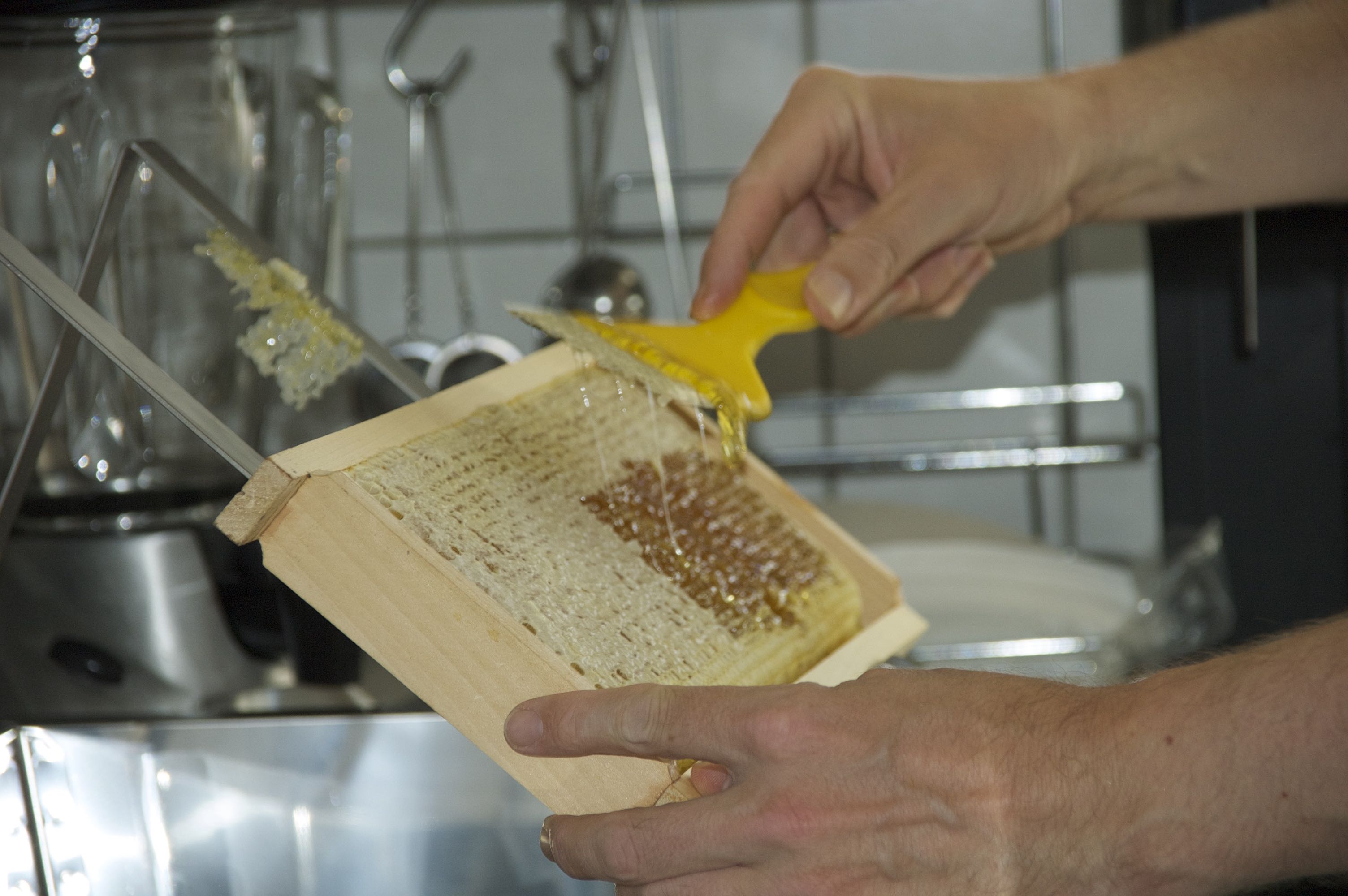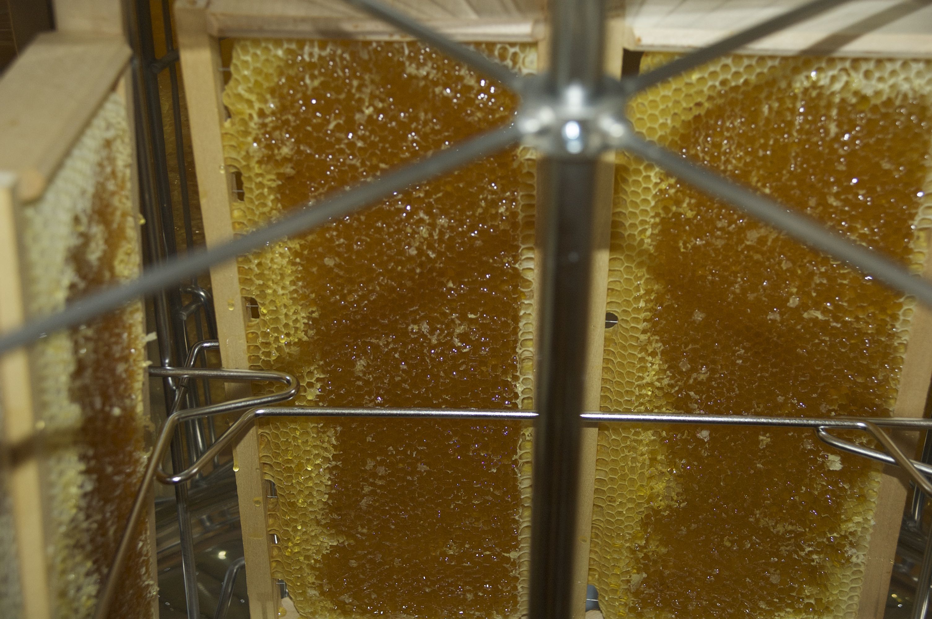 I går var vi endelig så langt! Husets birøkter hadde gjort i stand slynga på kjøkkenet, og han hadde allerede dagen før gjort kubene i stand slik at de skulle være så godt som tomme for bier (det er lettest å hente honningen når ikke biene får raserianfall!). Han bar opp de delene av kubene som skulle høstes, og så var det bare å sette igang arbeidet. Jeg hadde aldri vært med på dette før, så det var i grunn ganske spennende.