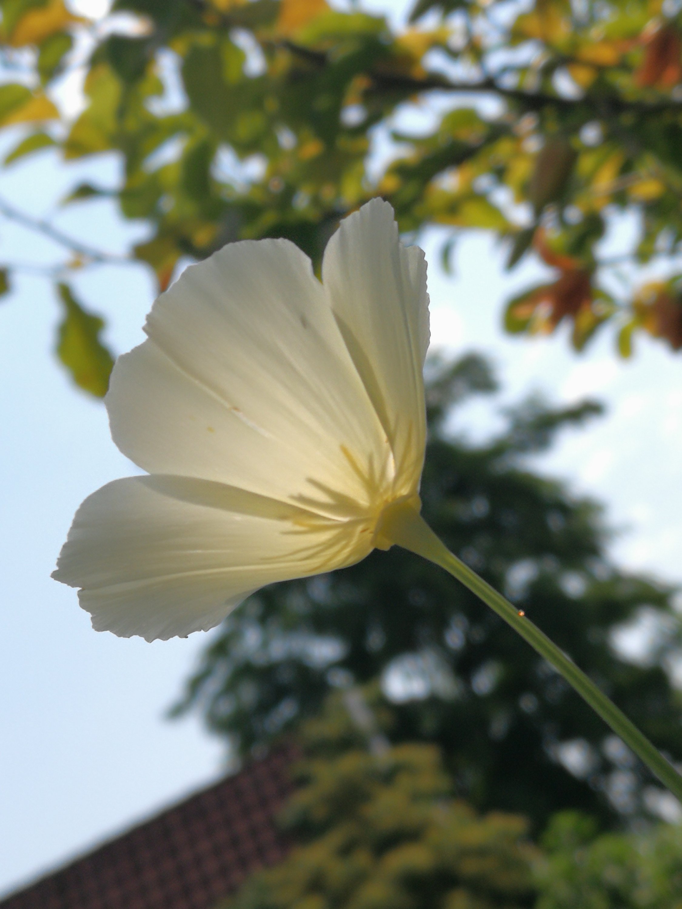 I vinter gikk jeg til innkjøp av en hel del poser med blomsterfrø, og i år skulle jeg satse stort på valmuer. Jeg strødde derfor flere tusen forskjellige valmuefrø rundt i hagen i påvente av en overdådig blomstring. Jeg vet ikke hva som gikk galt, antagelig flere ting, men noen overdådig blomstring ble det altså ikke. Den eneste sorten som har kommet opp, er kaliforniavalmuen (Eschscholzia californica). Det var denne jeg var mest opptatt av at skulle komme, så sånn sett er jeg ikke så misfornøyd med resultatet.