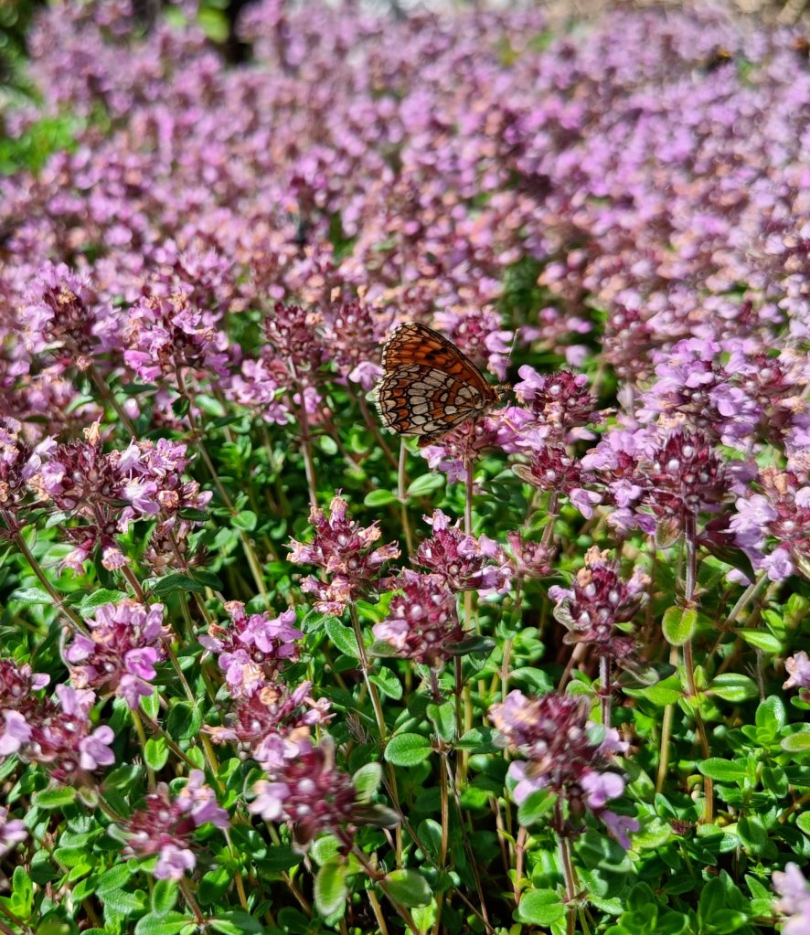 gjerne det med en kopp te i hånda når jeg har tid på morgenen), så jeg at det er rosatoner som dominerer Nedre Hage for tida. Det er sart rosa, knallrosa, rosa og hvitt… Det er nemlig busknelliken (Dianthus barbatus) som har fått formere seg og spre seg som den ville. Og at den vil er det ikke tvil om! Den er jo helt vill! Spørs om ikke jeg må fjerne noe av den etter blomstring, sånn at ikke også 2017 trenger å bli Busknellikens år.