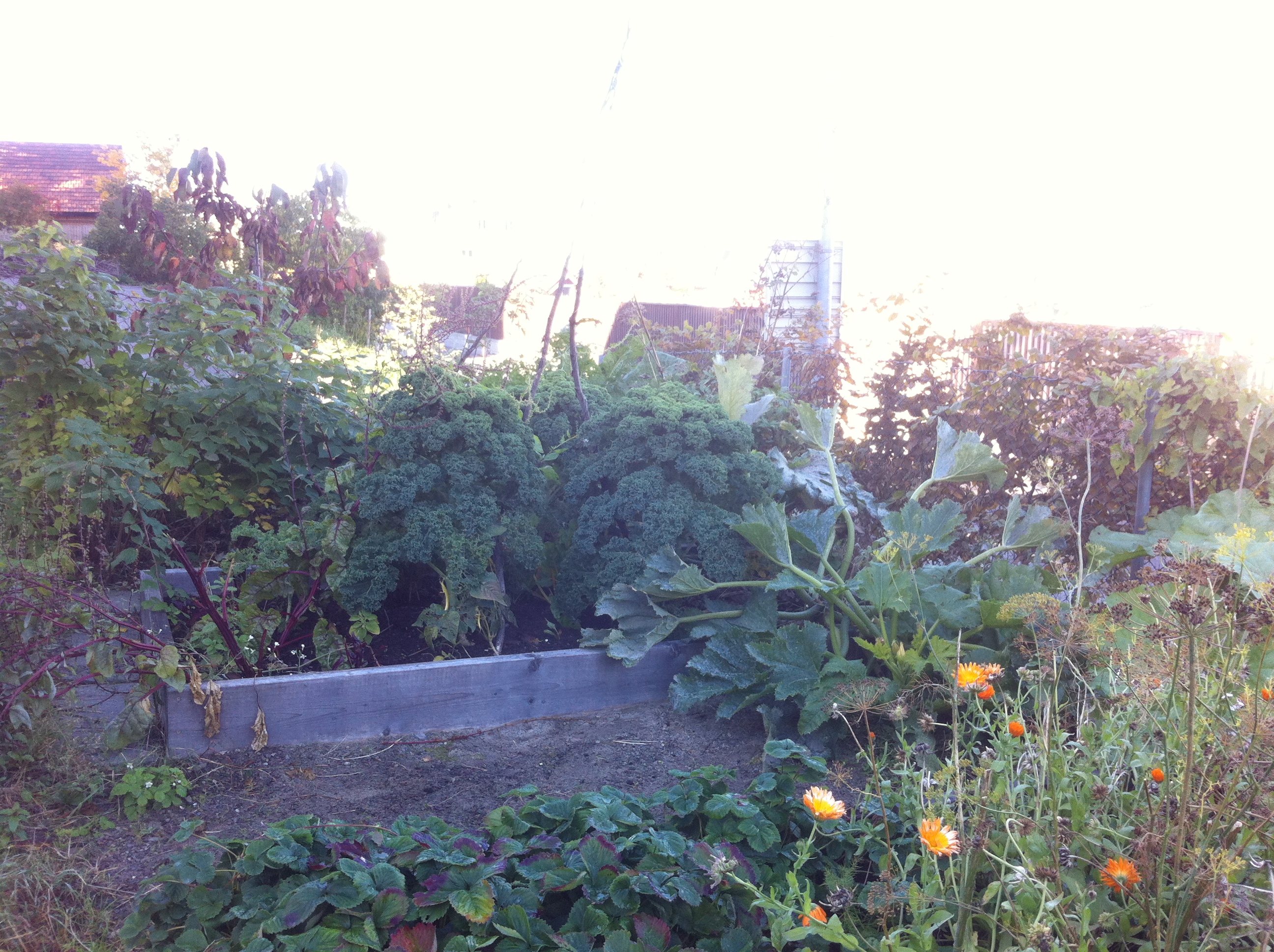 hagen… Dill er det riktignok mengder av der nede. Jeg klipte ikke ned de jeg sådde i fjor, og de selvsådde seg villig. Det gjør slett ingenting, og de både smaker godt, lukter godt, og ser fine ut i bedet. Squashen har hatt det vesentlig tøffere i år enn i fjor, og jeg har ennå ikke kunnet spise egen squash, men nå ser det ut til at det går an å forsyne seg. Det blir derfor squash på menyen en av de kommende dagene.