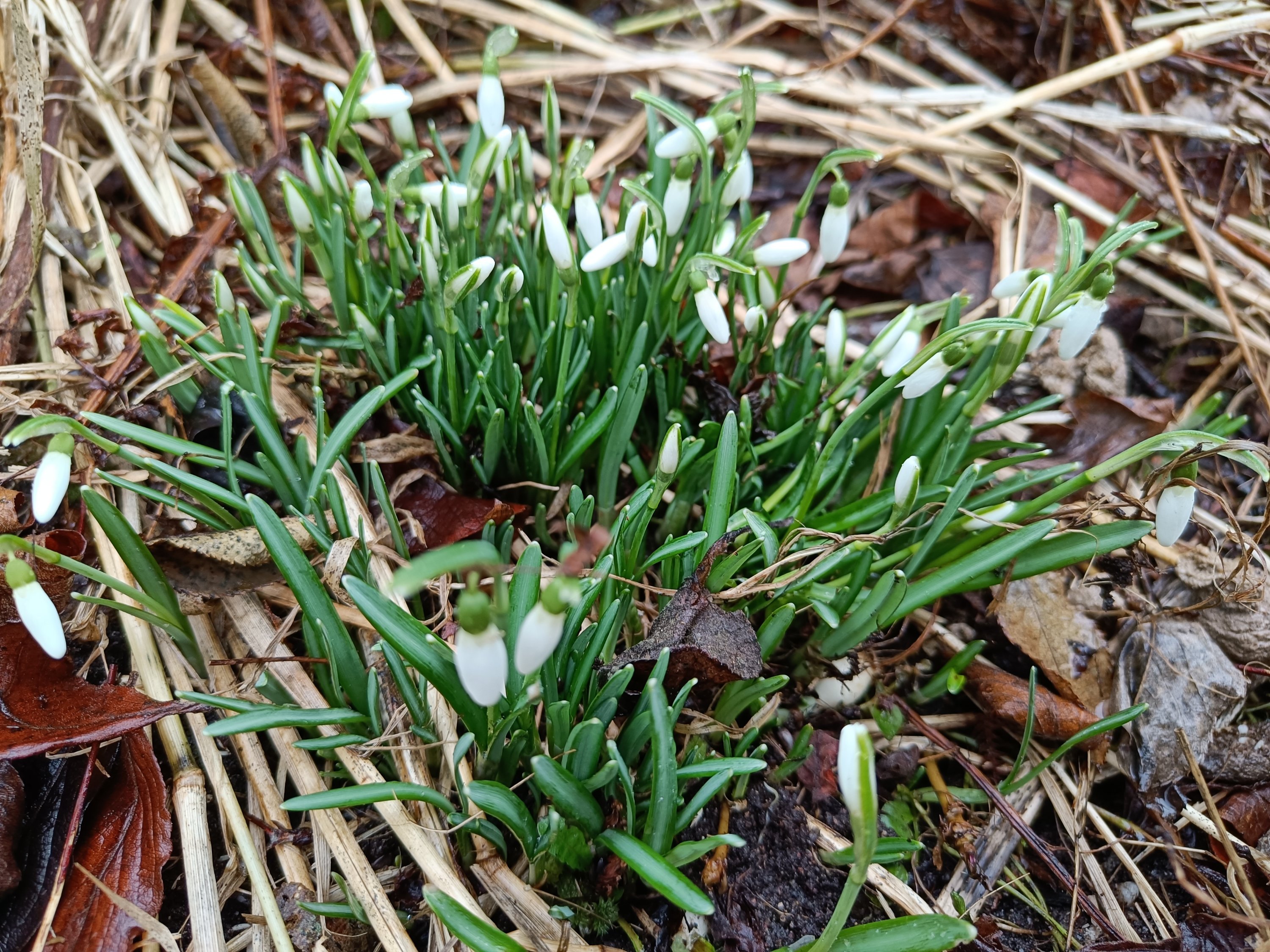 Snøklokkene titter opp av våt jord. Det har de riktignok gjort en stund, siden snøklokkene er de første som kommer fram på våren. Når sola titter fram, åpner blomstene seg noe mer, men i morges ville de bare henge som små tårelignende hvite dråper og heller drømme om varmere dager.