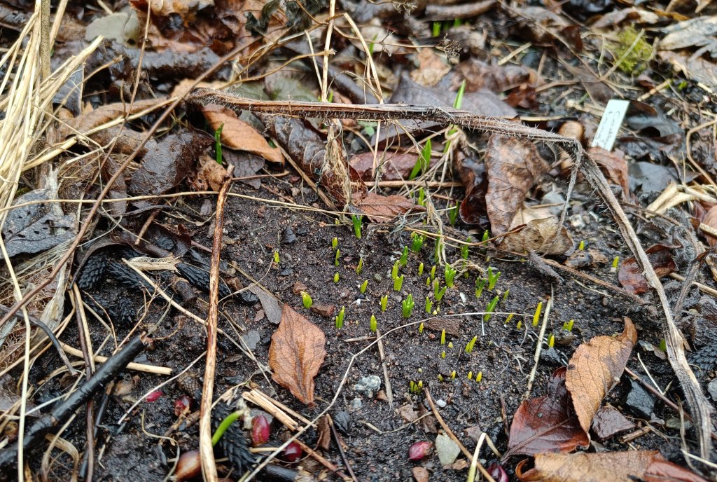 Og der! Der gikk startskuddet for Våren. Mars er første vårmåned og i mitt hode er 1. mars første offisielle vårdag. Det er en våt og hustrig start på vårsesongen, men det er i alle fall ikke snø i år. Det har det nesten ikke vært i det hele tatt denne vinteren, og jeg håper det ikke har gjort skade på rosene og annet som gjerne skulle vært litt dekket for frosten. En rask runde i Øvre Hage viser at hagesesongen er i gang, og jeg gleder meg vilt og hemningsløst til å få jord på fingrene igjen. Det er foreløpig for kaldt om nettene til å ta for mye av opprydningen ennå, og beskjæring må stort sett vente noen uker til. Jorda er for hard til å grave i, og luking betyr bare at jeg lar hele rota ligge igjen i bakken. Jeg må derfor smøre meg med tålmodighet, som det heter. Jeg får heller glede meg over alt som kommer samt følge med på hvordan Våren viser stadig tydeligere livstegn i hagen. Den beste tida ligger foran oss!