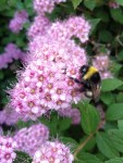 - Japanspirea (Spiraea japonica) med humlebesøk