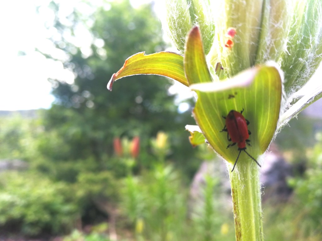 Den yngste av søstrene Høst har i lengre tid ruslet barføtt gjennom hagen og etterlatt striper av gult og rødt der hennes hender har strøket over plantene. De fleste av hagens blomster har bøyd sine hoder for henne og latt sine kronblader falle til jorda. En og annen rose på nesten bare kvister strekker seg fremdeles mot himmelen, og den sentblomstrende Ormedrua (Cimifuga ramosa) har lysende hvite spir på mørkerøde flikete blader. De forskjellige syrinhortensiaene (hydrangea paniculata) er ennå vakre der de står i full blomst, som de allerede har gjort i mange uker, men noen har fått en kledelig rødme i kronbladene etter Lillesøster Høsts besøk. Om ikke så altfor lenge vil Lillesøster Høst måtte vike plassen for Storesøster Høst, og også de sentblomstrende hagebeboerne vil måtte knele for henne. Det gjelder å nyte det hele mens man kan!